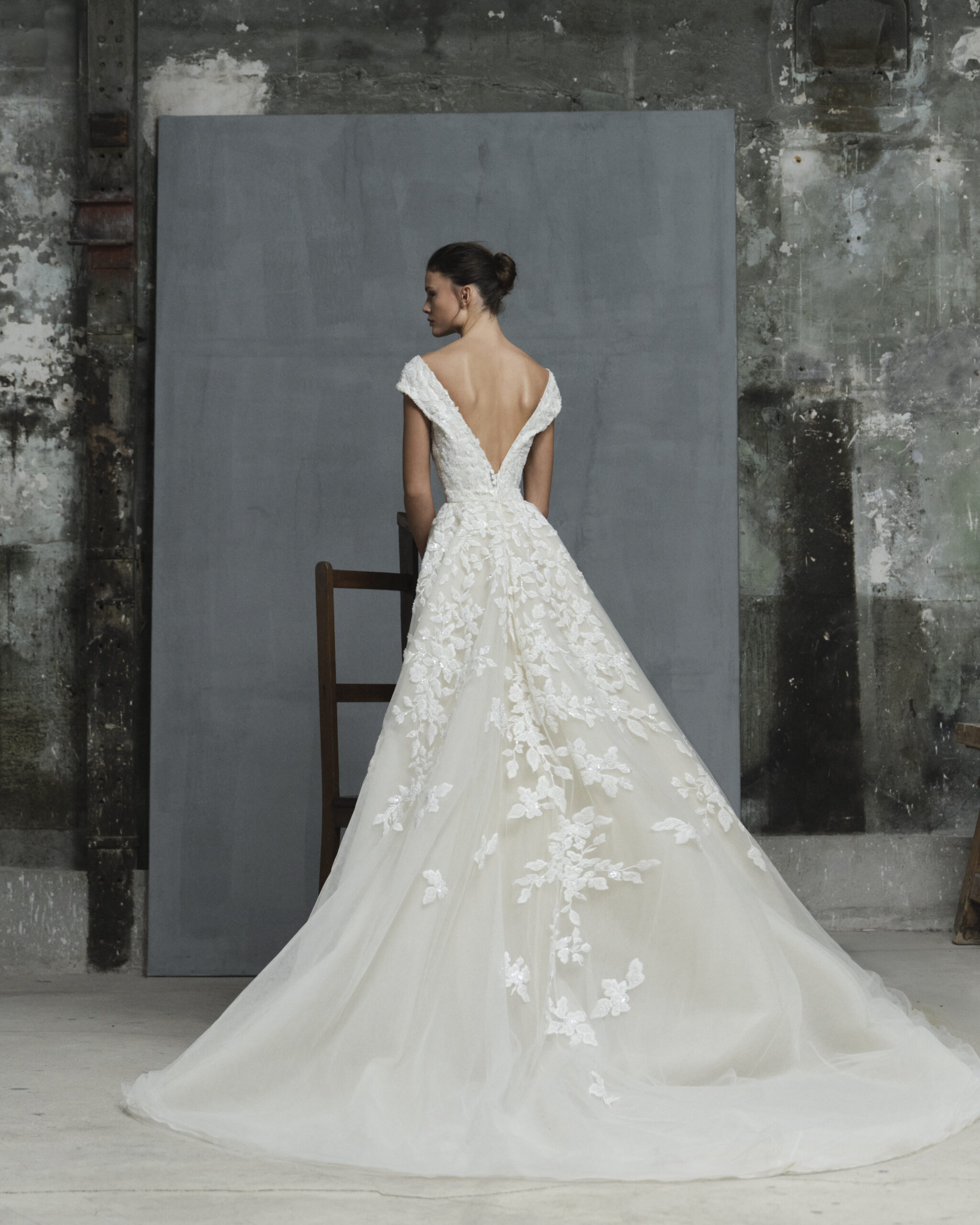 自然のフォルムが持つ静かな力強さを想い起こさせる壮大なウェディングドレス。葉を象った刺繍とシークイン刺繍が全面に施され、光を受けて華やかに輝きドラマチックに。身頃部分は日本の花嫁のバストラインを美しく魅せ、たくさんの方に愛されるようにトリート仕様にチェンジ。取り外しのできるオーバースカートは、ドレス自体をより立体てきに、そして多様な着こなしを叶えます。