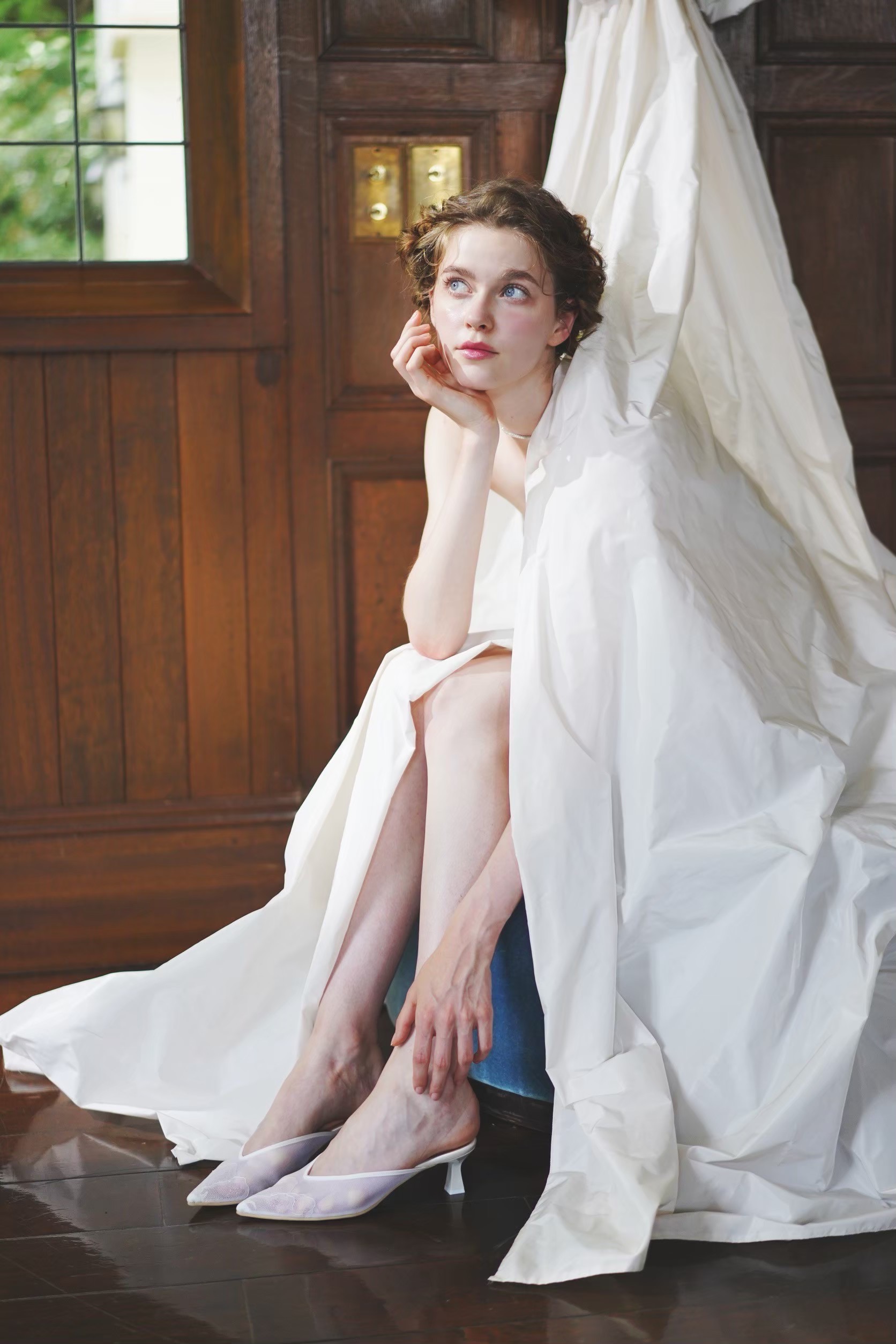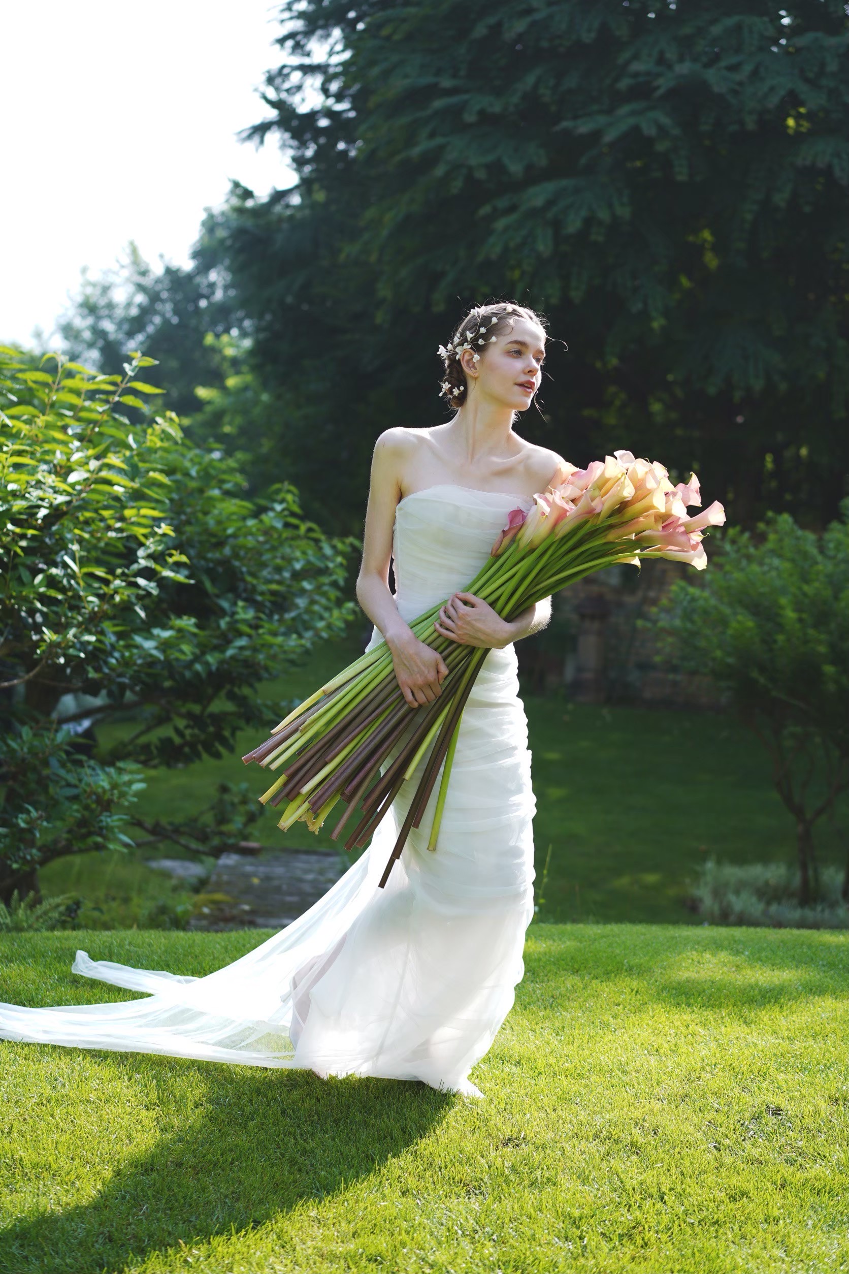 そんなカラーとともにご紹介するのはELLY SOFOCLI(エリー ソフォクリ)のスレンダードレス。ミニマルでクリーンな佇まいの中に、確かなパワーと意志を感じさせるデザインは、感度の高いファッションラバーたちから高く支持されています。シルエット、カッティング、マテリアルが卓越した感性によって、完璧に融合されたドレスは、花嫁の内なる美しさを引き出します。愛らしく編み込んだヘアスタイルには、温かみのあるゴールドとフラワーモチーフのヘッドパーツを。エレガントなドレスをピュアでフレッシュ、そしてファッショナブルに纏ってみてはいかがでしょうか。