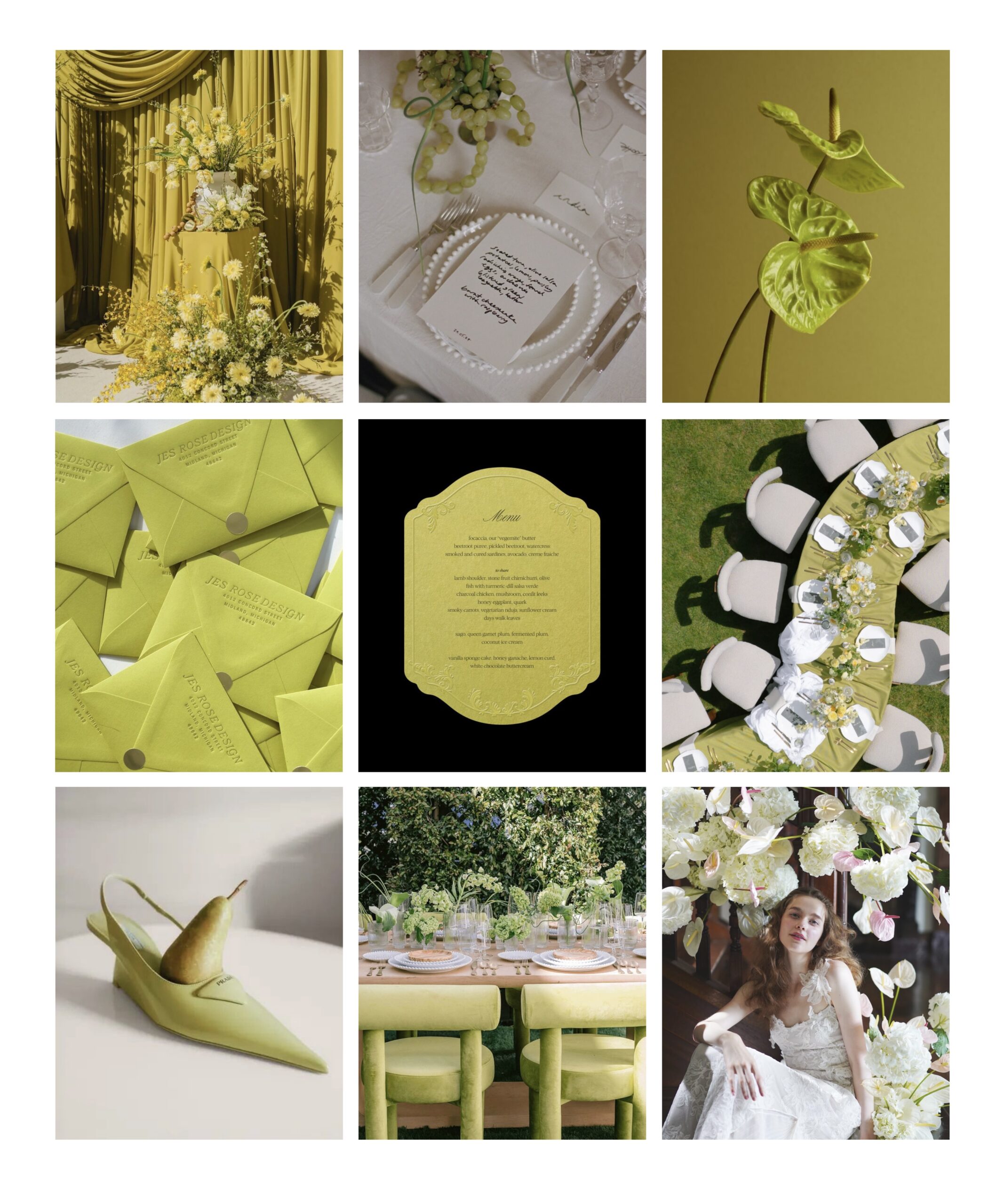 2026年のウェディングシーンを鮮やかに彩るのはシャルトリューズ。黄緑と黄色が交わりあった、明るくフレッシュなシャルトリューズカラーは、目にする人々に新鮮さとエネルギーを与えます。合わせる色によって楽しみ方が変わるのもシャルトリューズカラーの魅力。真っ白やシルバーカラーのアイテムと合わせれば、都会的でモードな雰囲気に。ニュートラルカラーや淡いピンクと合わせればフレッシュさをも感じます。