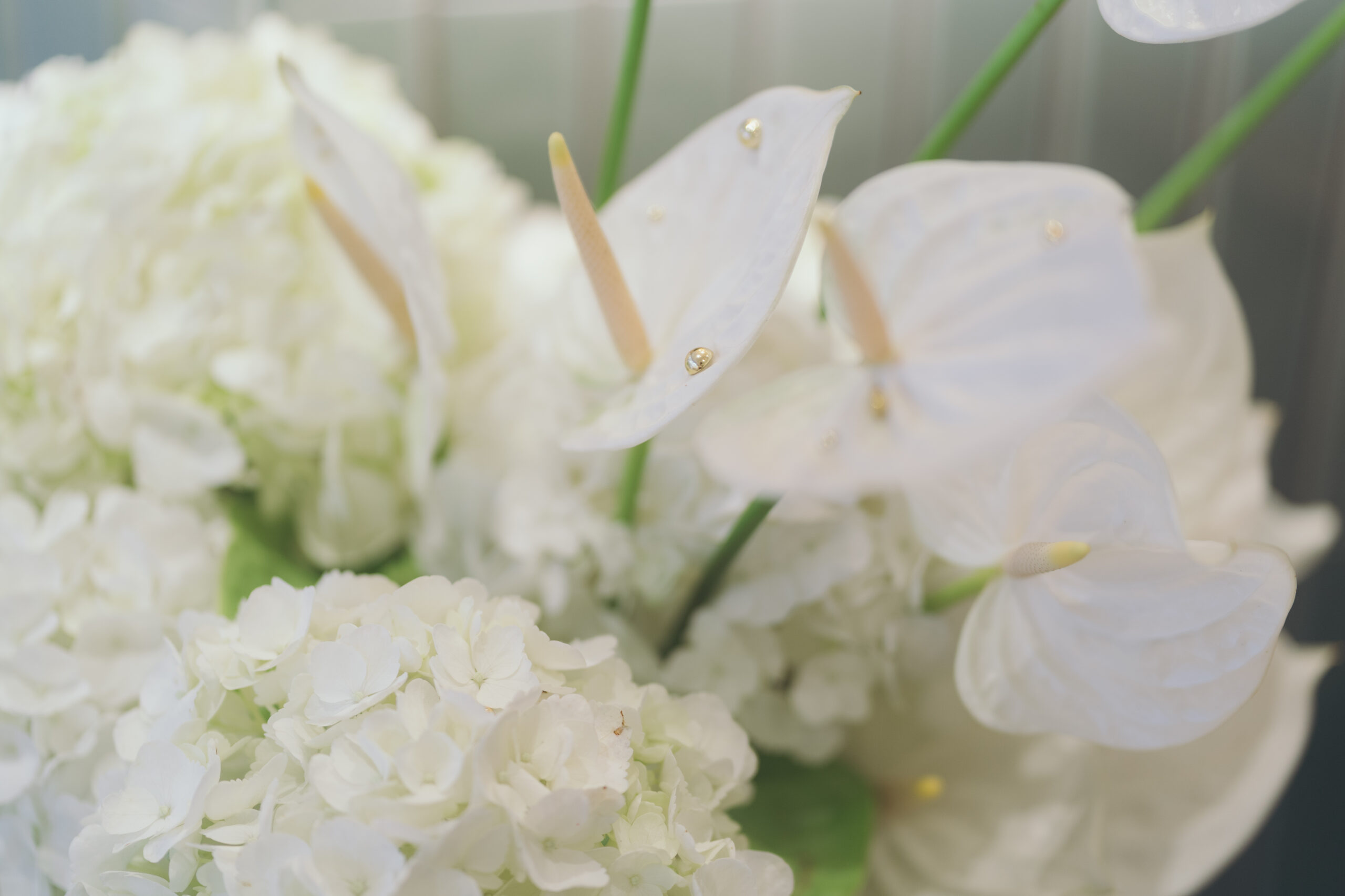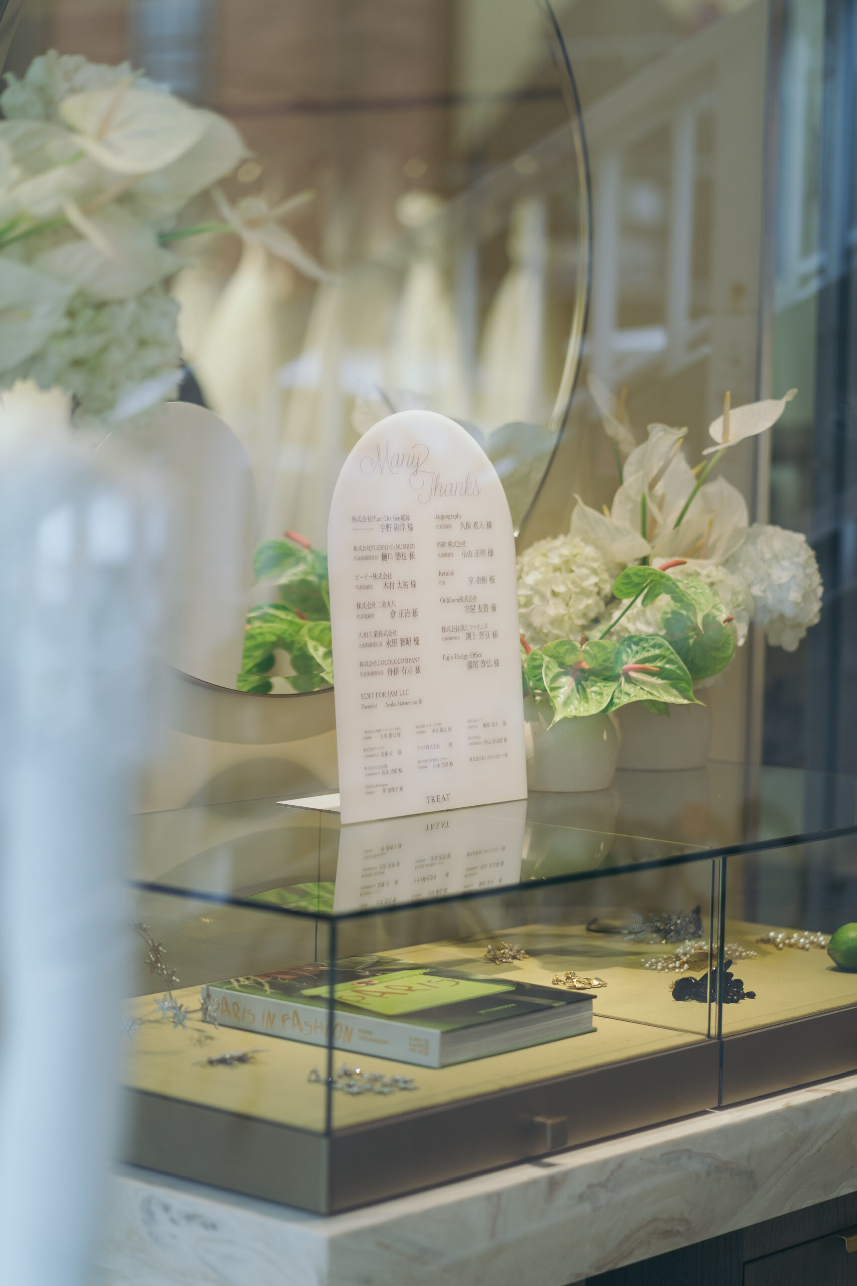 これまでの20年を支えてくださった方々や、これから共に沖縄のウェディングを素敵にしていく皆様よりいただいたお祝いのお気持ちは、当日のお花としてお客様をお迎えしました。