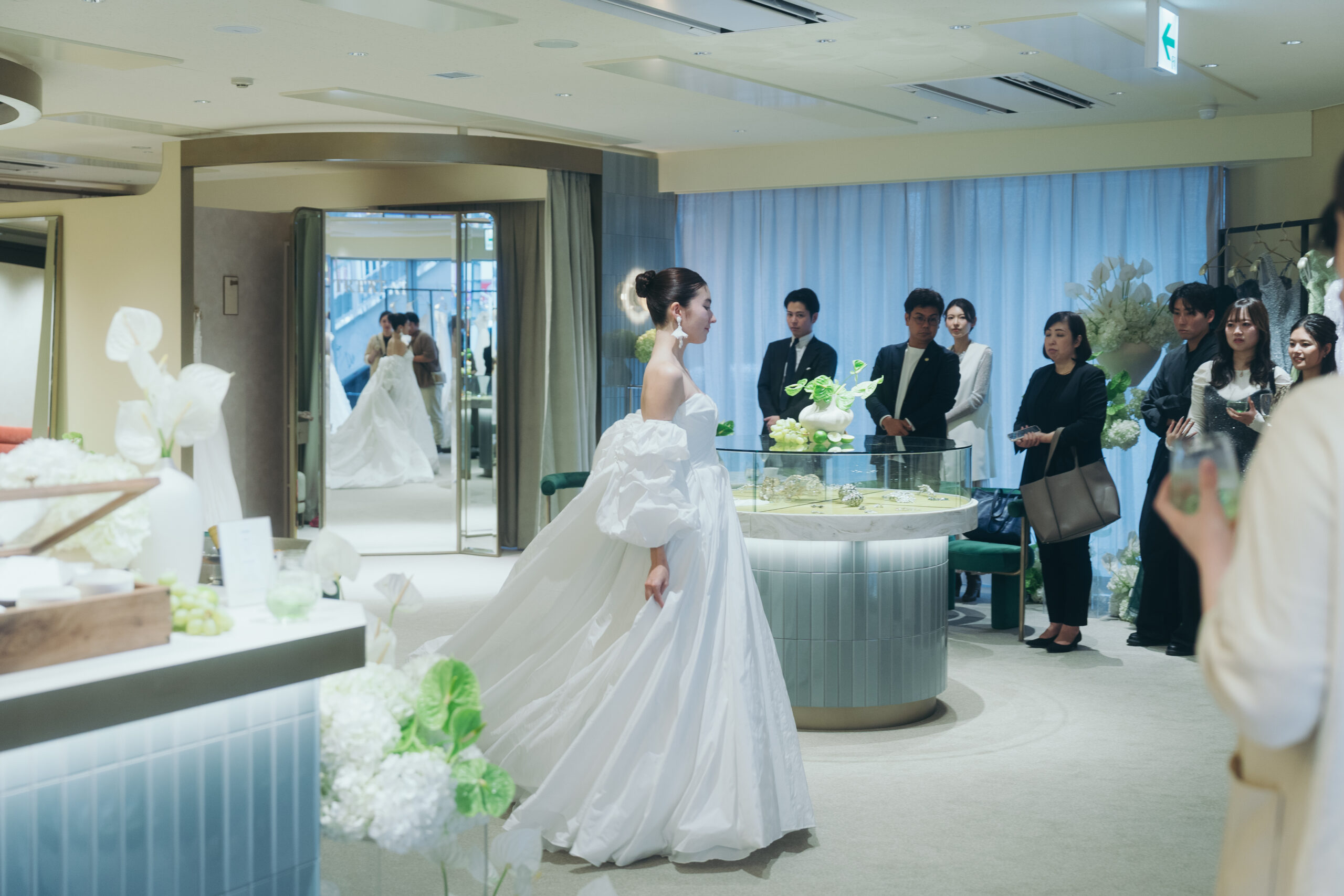 そしてレセプションパーティーでは、沖縄店で取り扱うウェディングドレスやカラードレスでミニドレスショーを行いました。