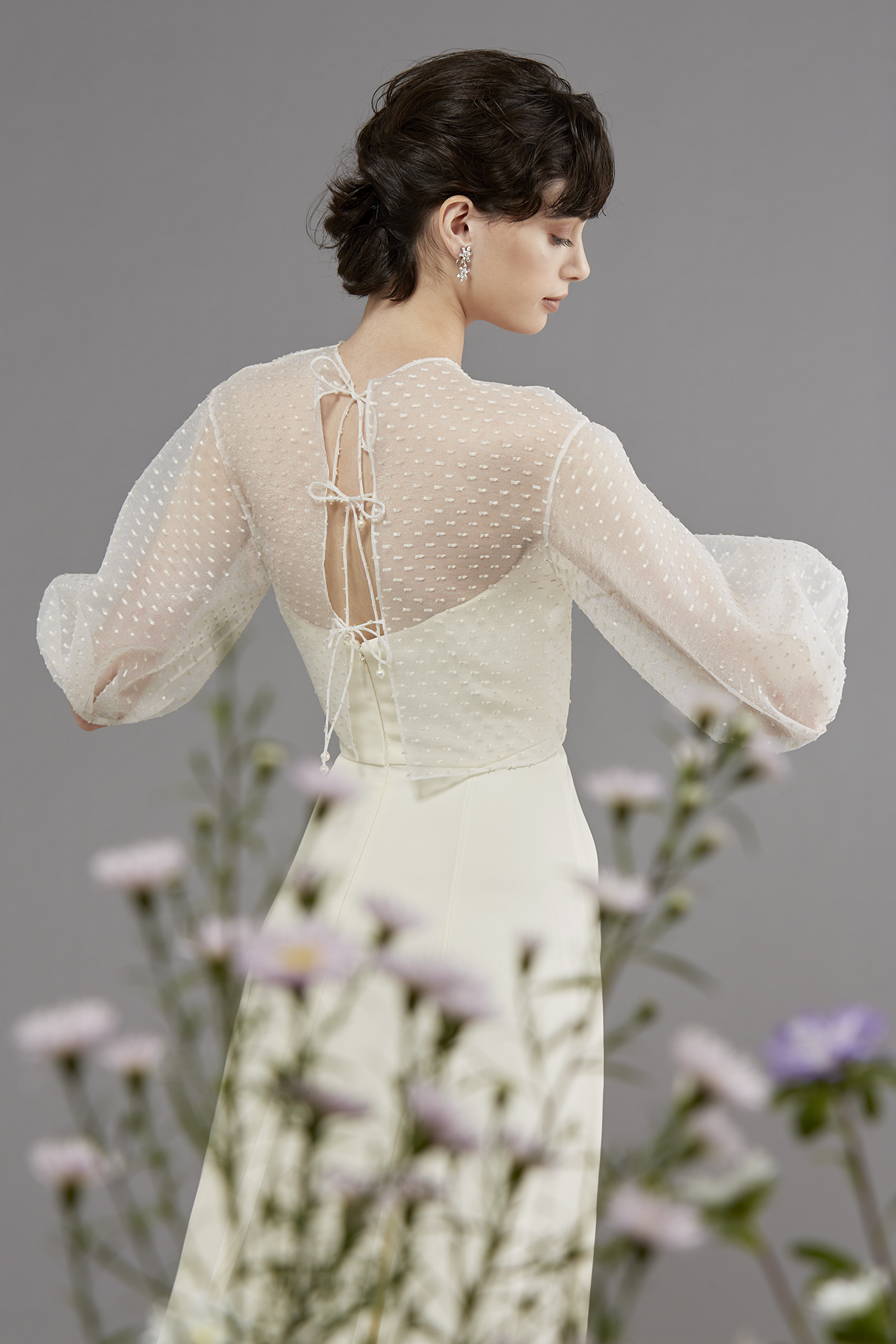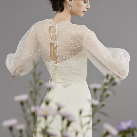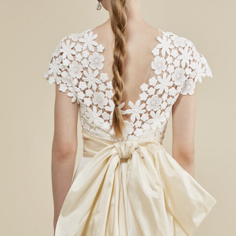 お選びいただいたウェディングドレスは、ザ トリート ドレッシングでお取り扱いしているブランドの中でも人気のラグジュアリーブランド、Elie Saab Bride(エリー サーブ ブライド)の半袖Aラインのウェディングドレスです。ドレス全体に施されたドット模様やチュールトップから透けるキャミソールのデザインが、ロマンティックで可憐な印象を与えます。またエリー サーブ ブライドに欠かせないのはブランドのアイコニックでもある、ウエストのレザーベルト。華奢なレザーベルトを付けることにより、ファッショナブルな現代の自由なブライズスタイルを象徴するようです。堀田真由さんのナチュラルで可憐な雰囲気にはもちろんの事、お二人の幸福感のあるムードにとてもお似合いでした。ご結婚が決まったお二人が最初に手に取るバイブルである、ゼクシィにてお手伝いできたこと大変嬉しく思います。