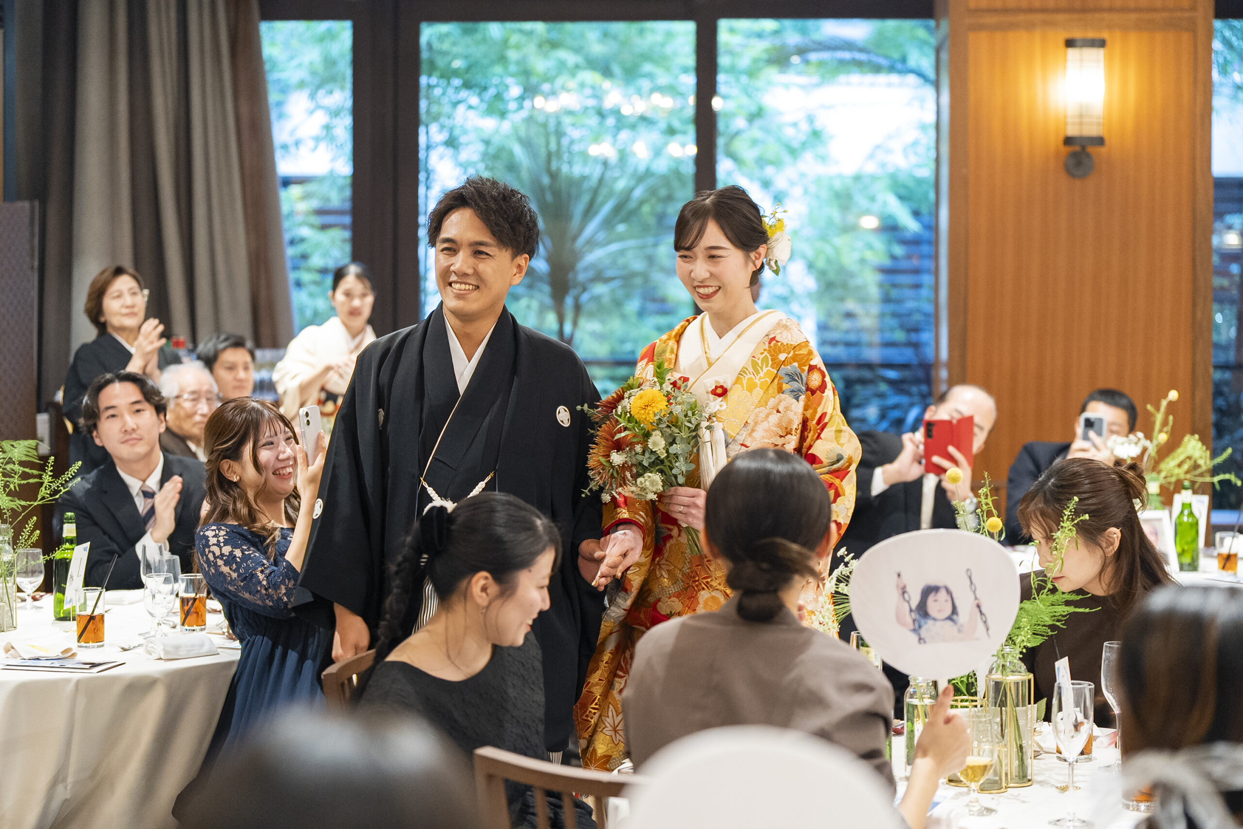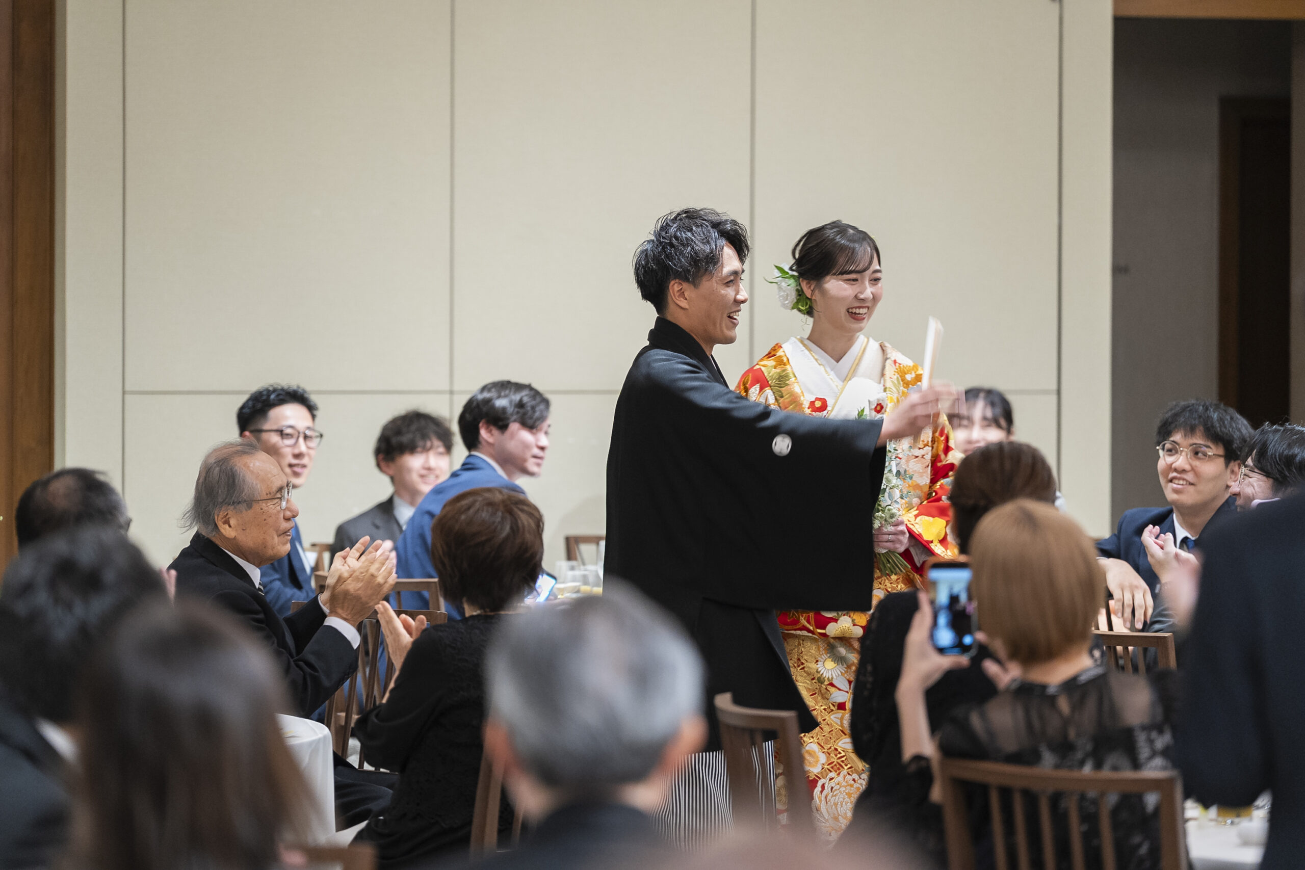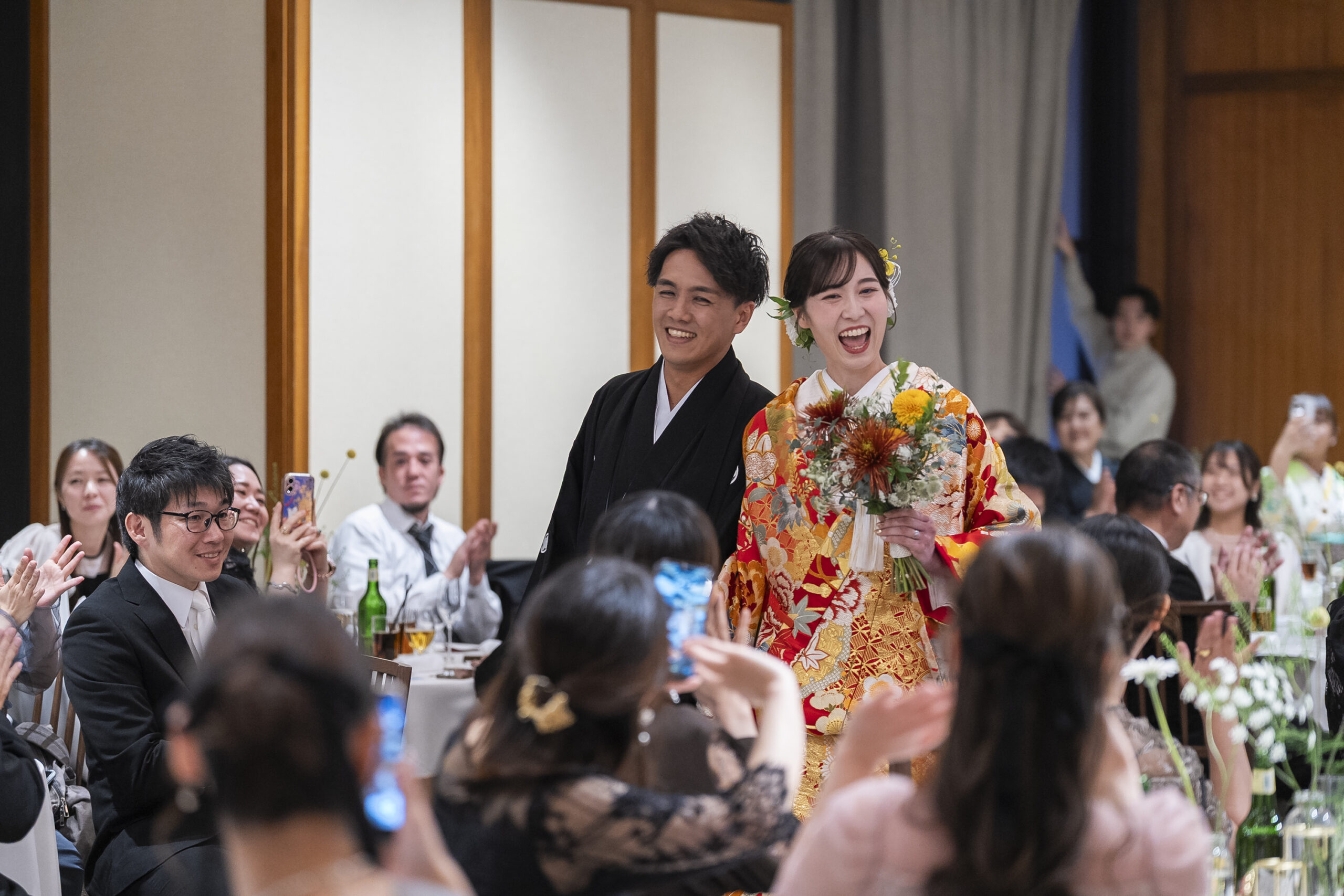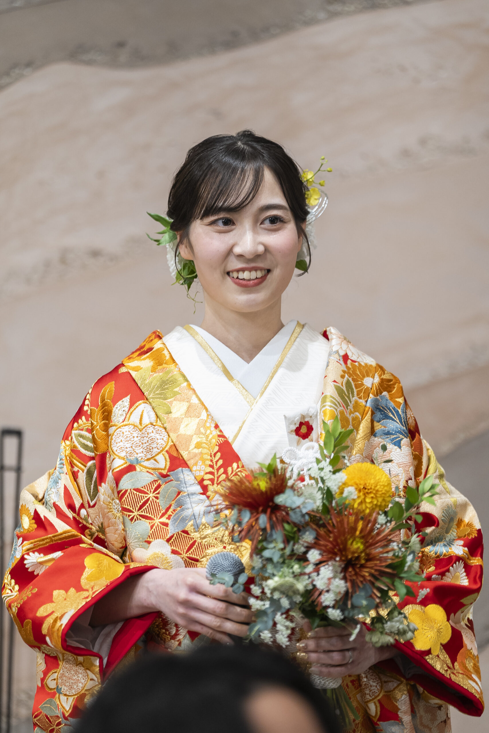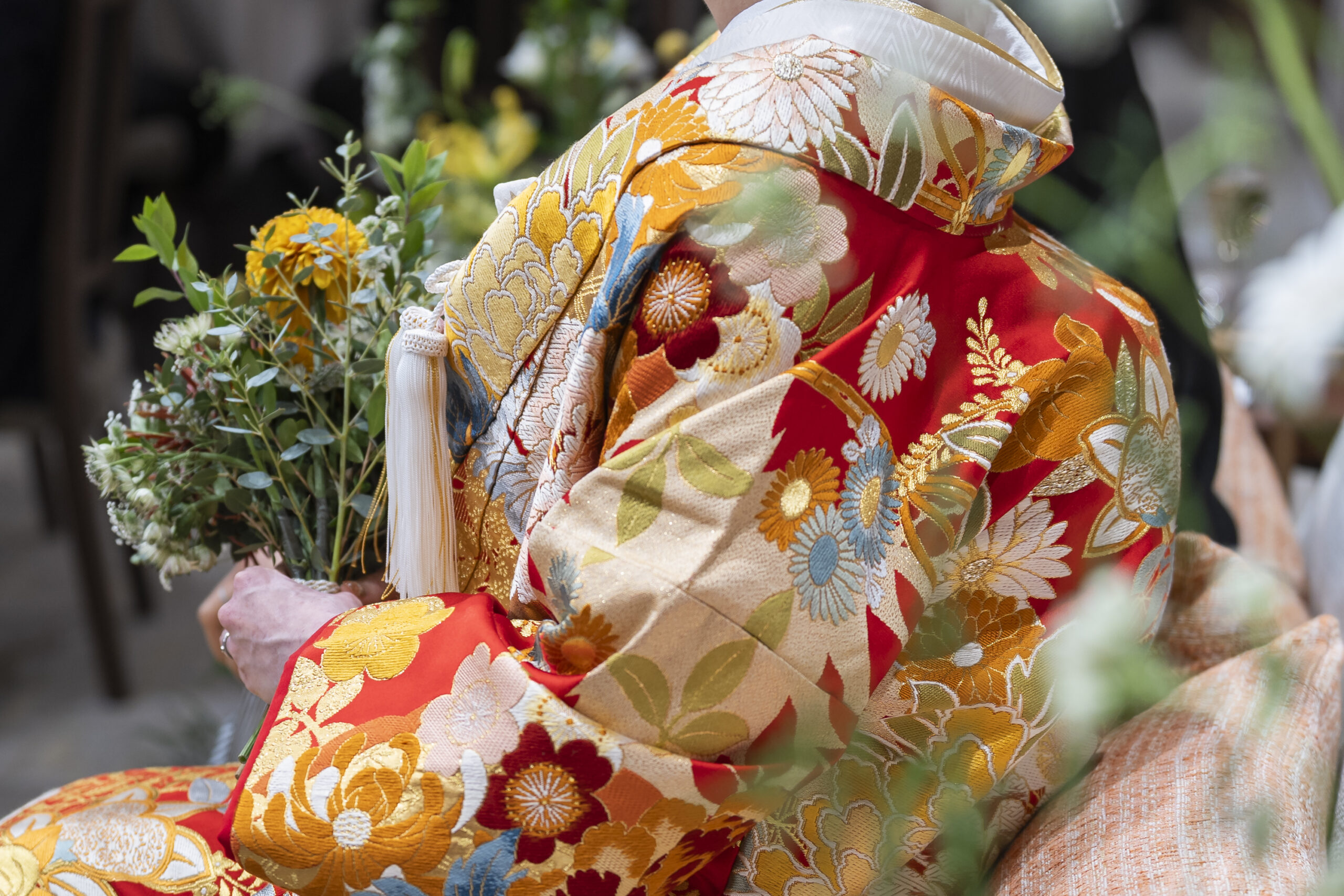 贅沢な刺繍の施された色打掛で過ごす披露宴スタイル