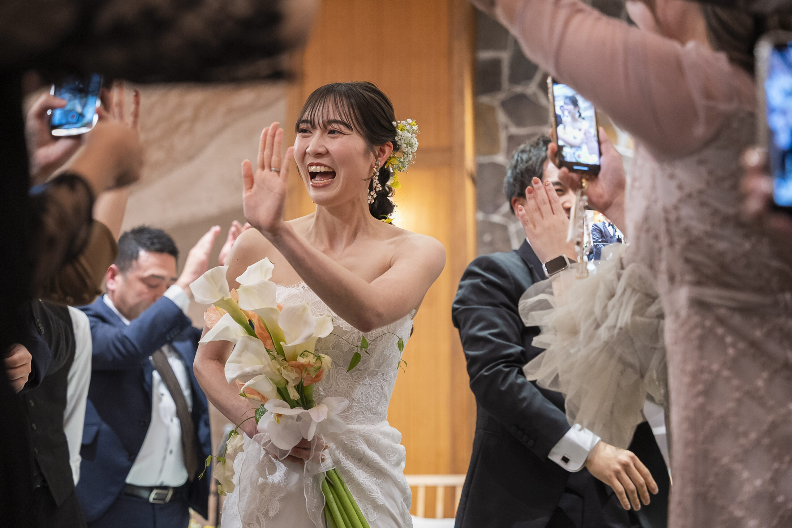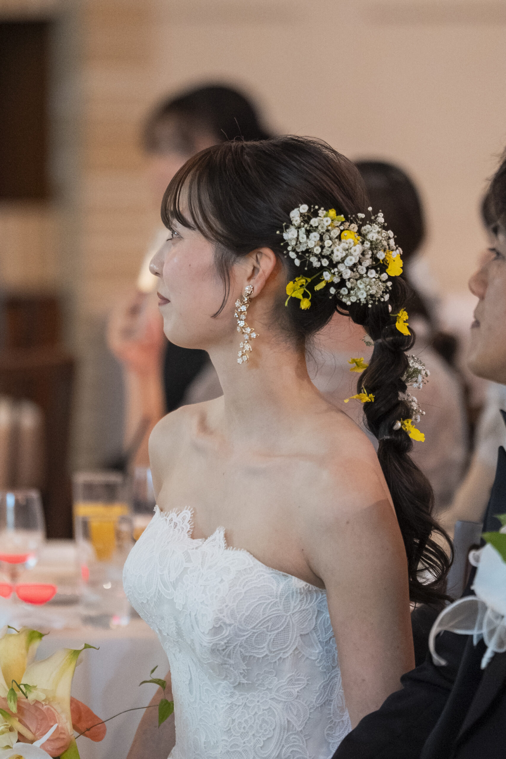 光沢を抑えたマットな質感と上品で落ち着いた印象が特徴の一着をお召しいただくと、優しさのオーラを纏い愛らしい笑顔の可憐さを持ったご新婦様がより