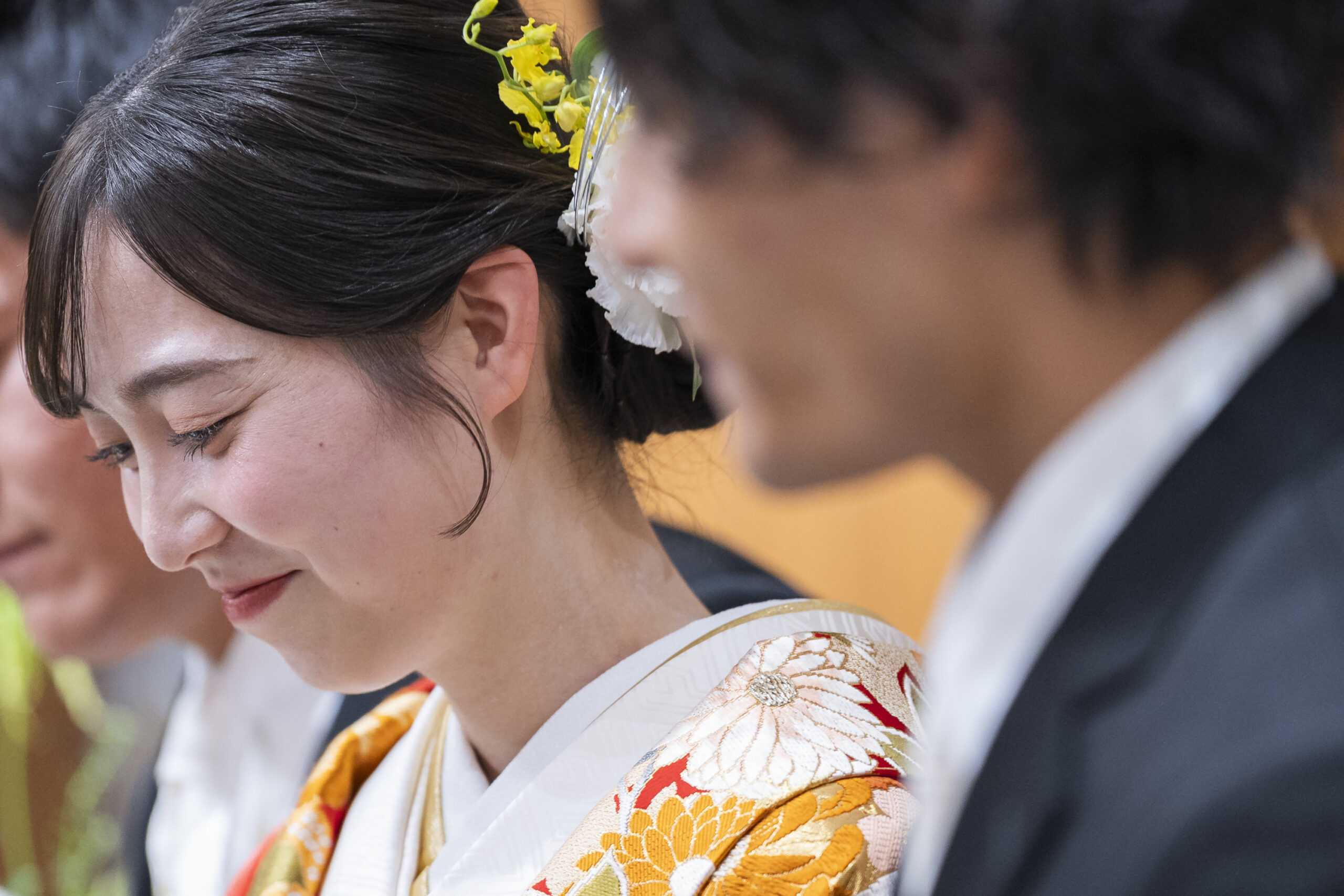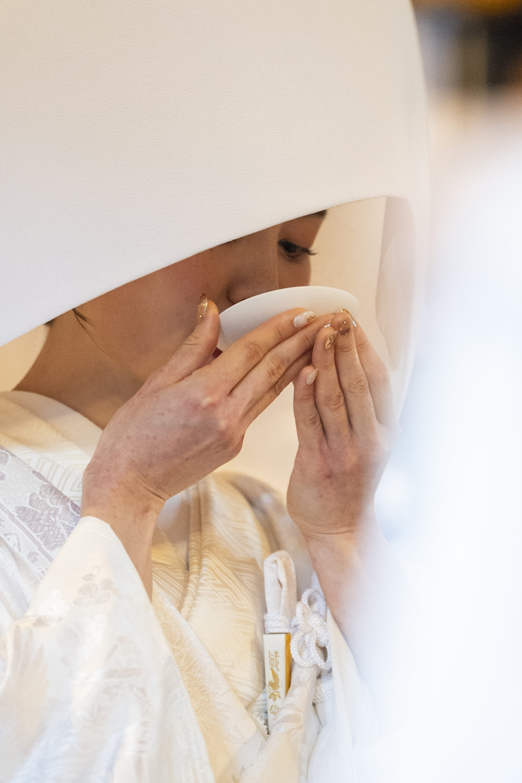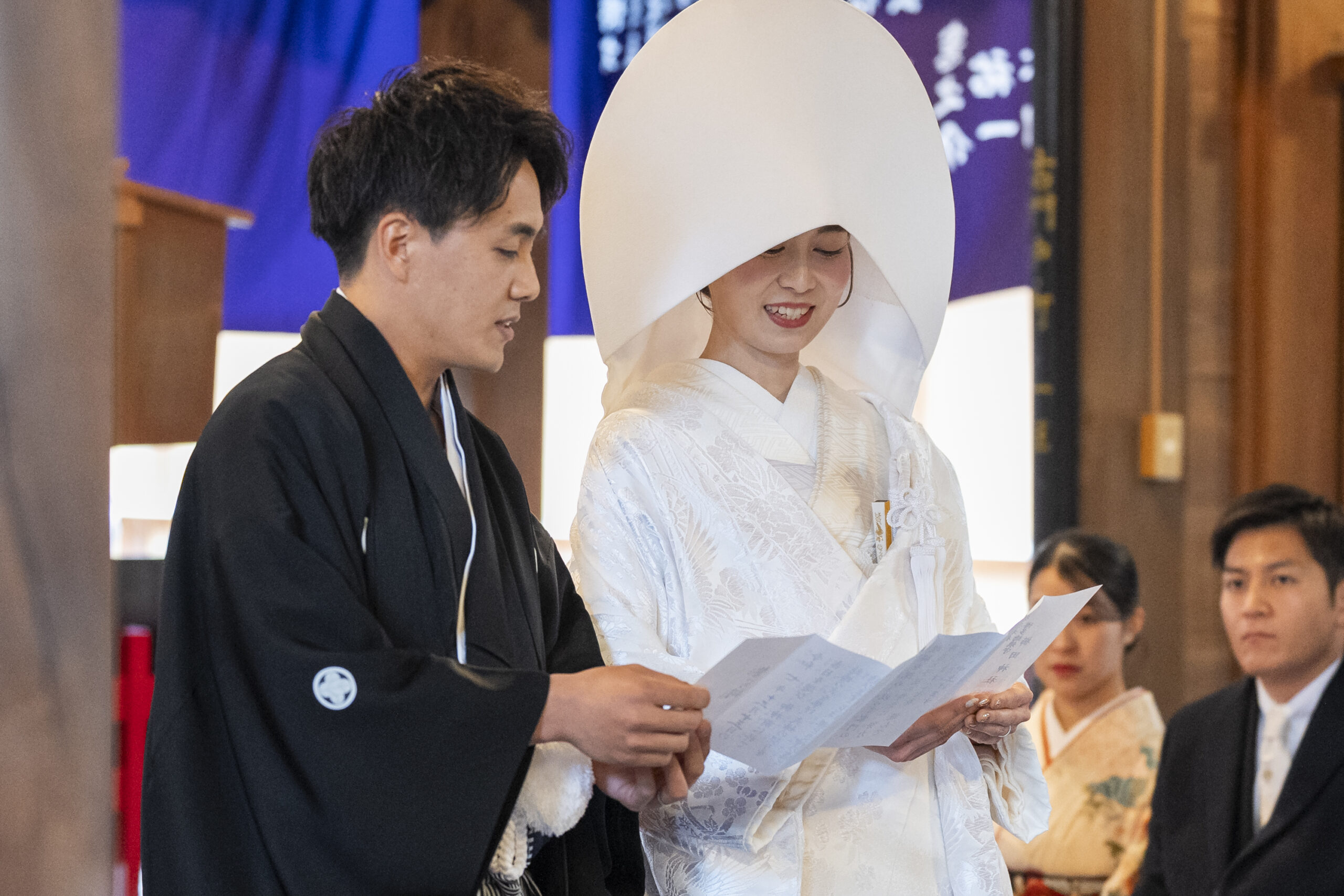 晴れ渡る澄んだ空の下、お二人の最良な一日は大切なご家族に見守られながら神前式から始まりました。