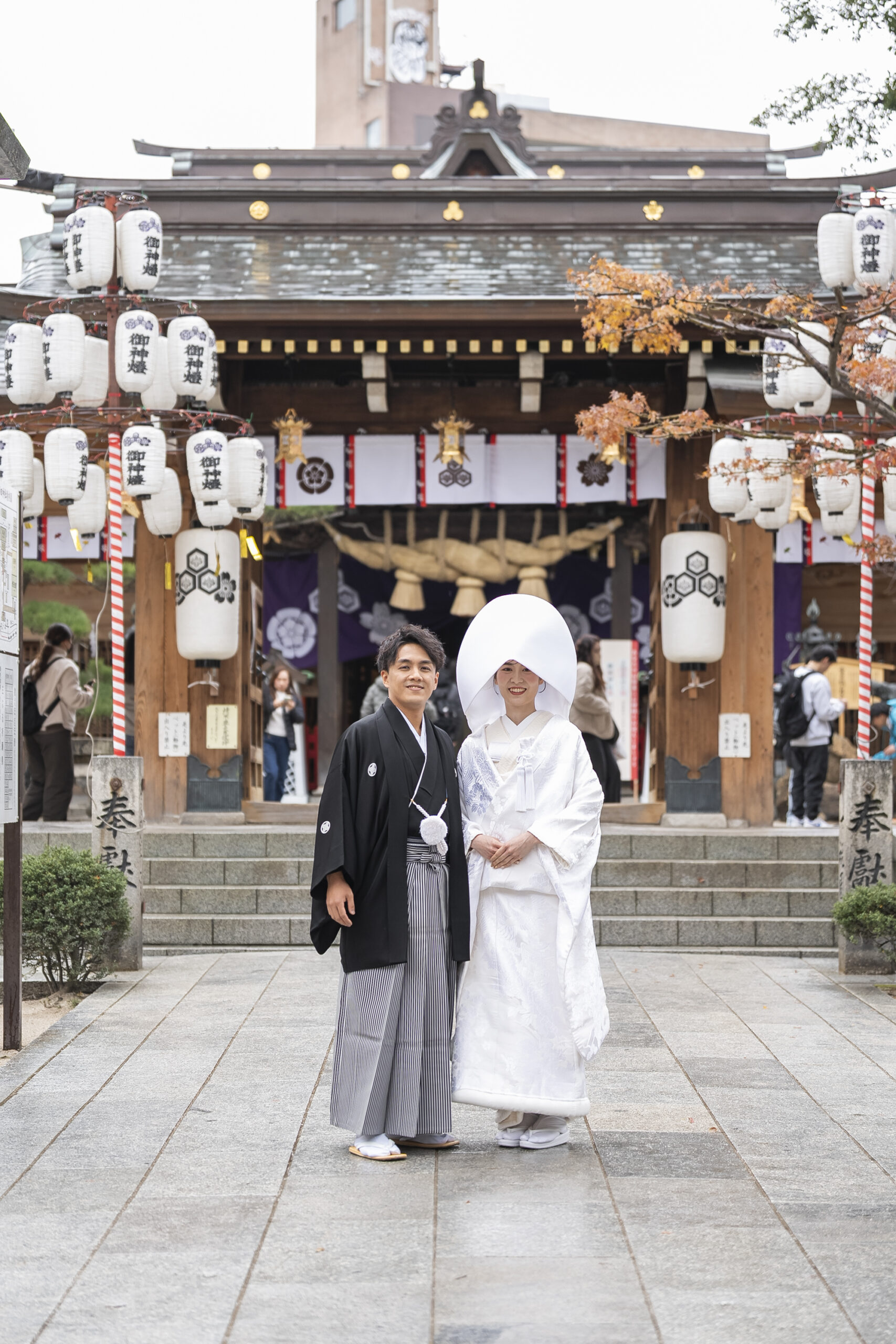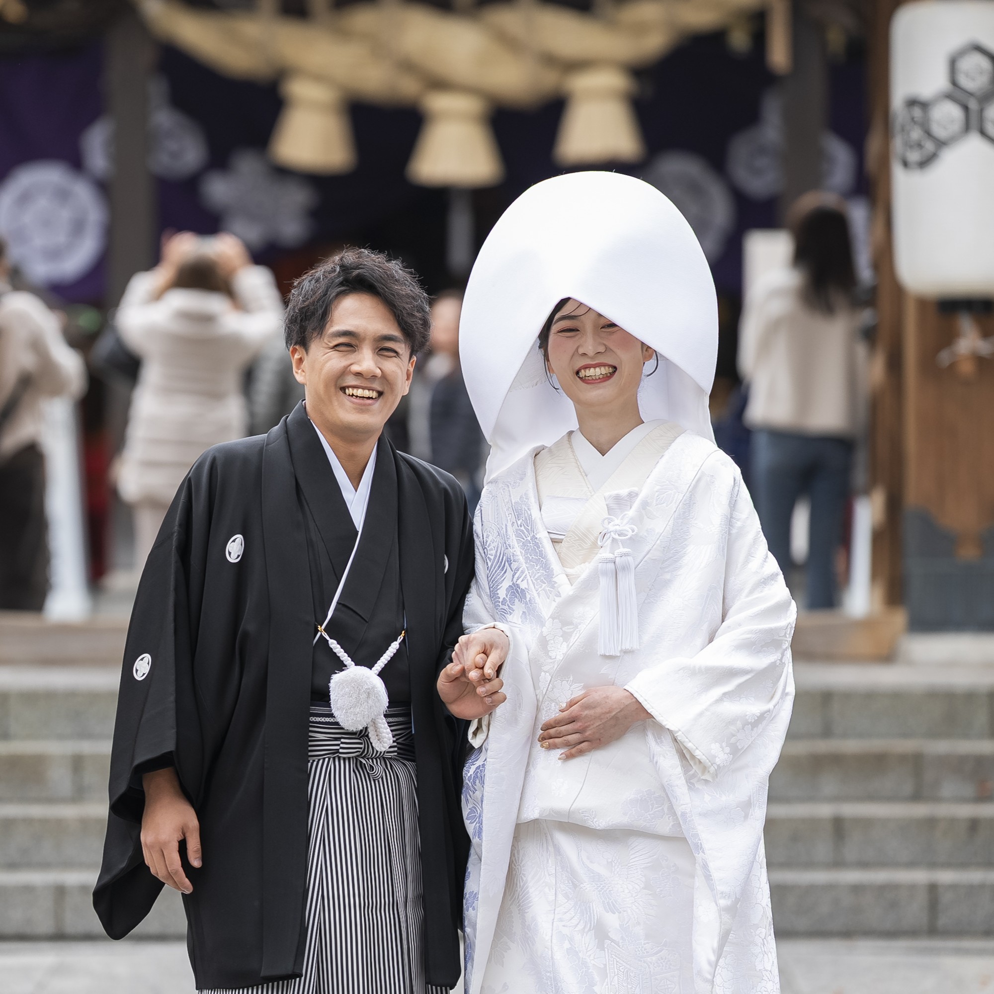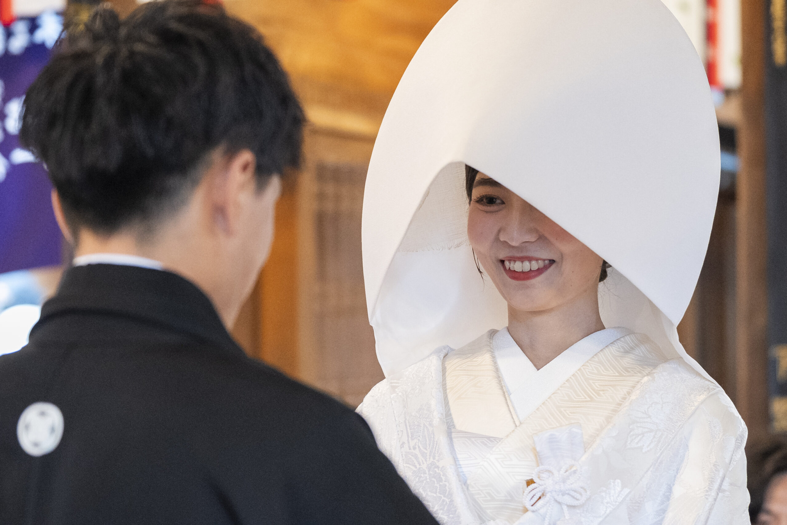 晴れ渡る澄んだ空の下、お二人の最良な一日は大切なご家族に見守られながら神前式から始まりました。