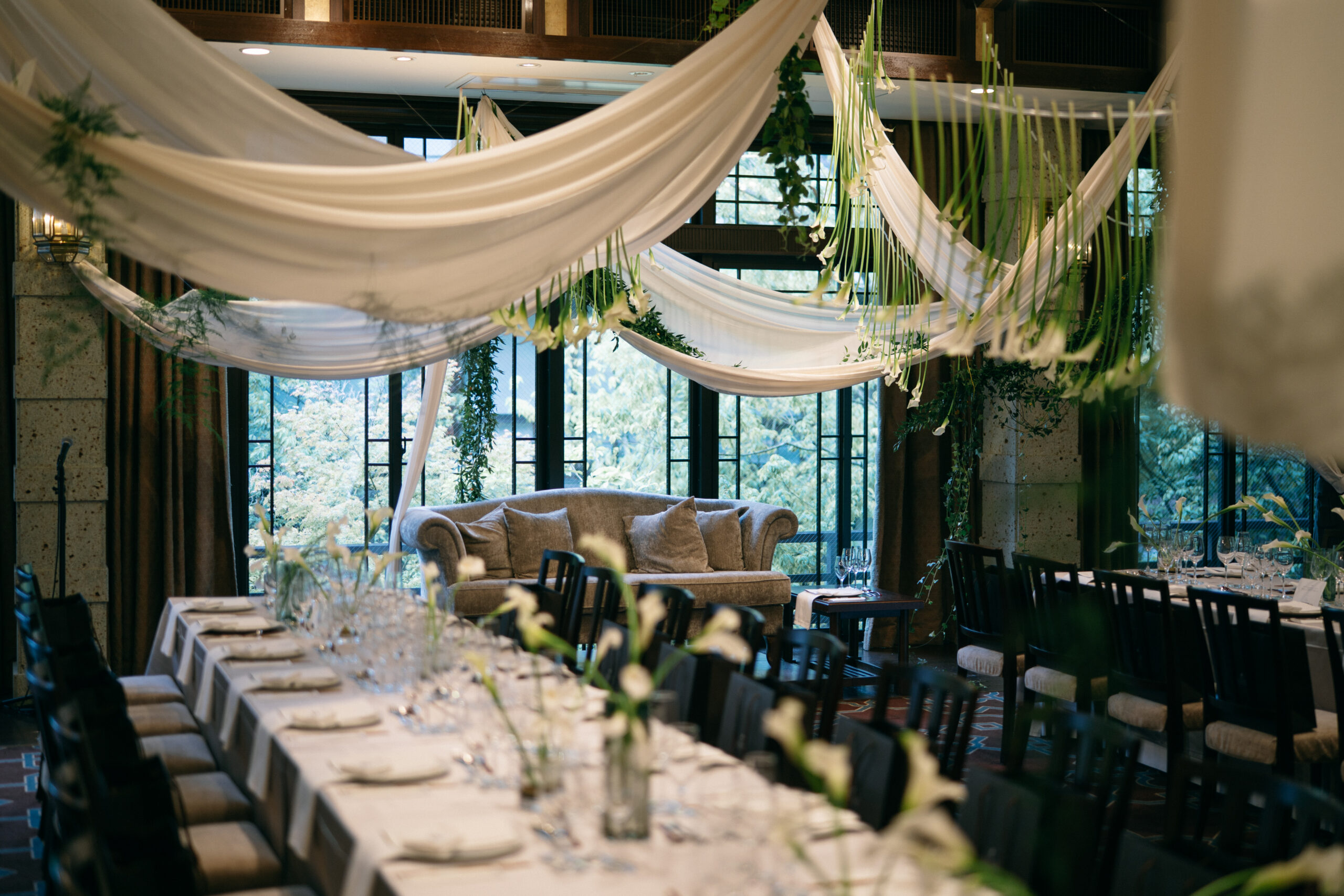 ヒガシヤマは豊かな緑が見える開放感あふれる披露宴会場です。