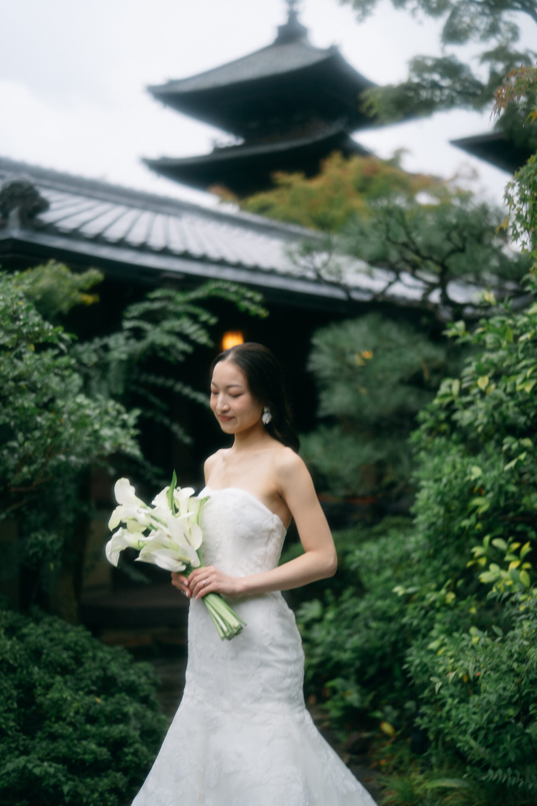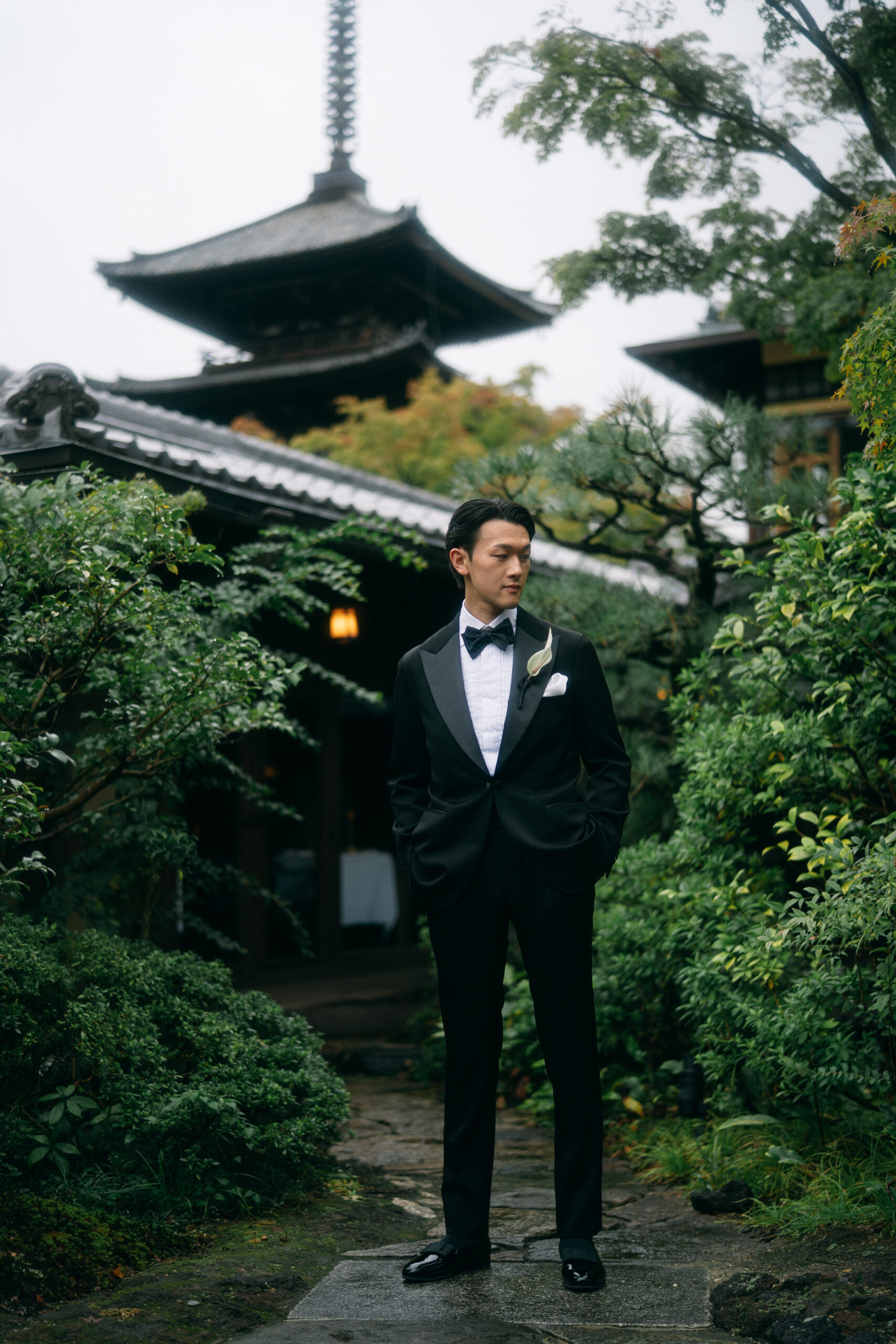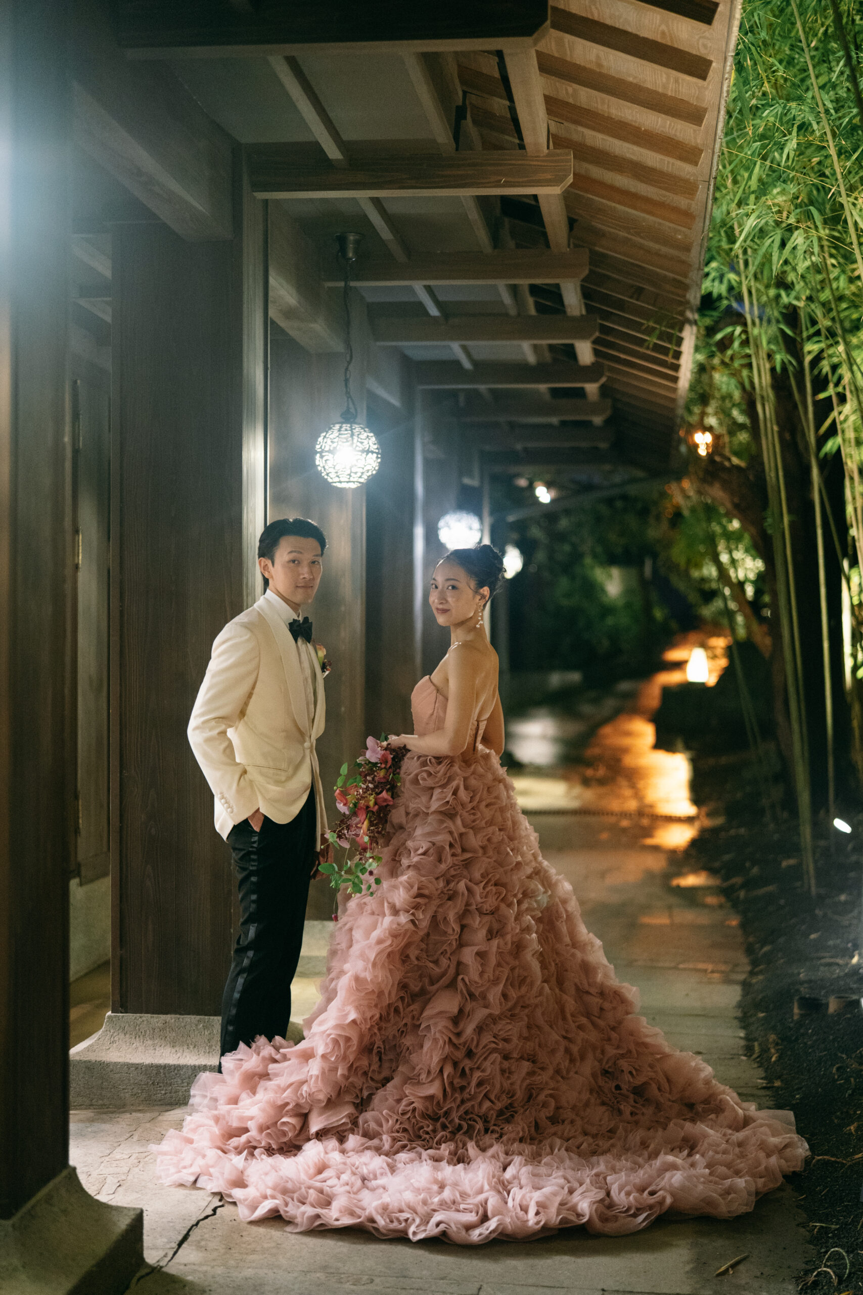 竹林の中に佇むお二人は、ナチュラルすぎずシックでエレガントな雰囲気に。