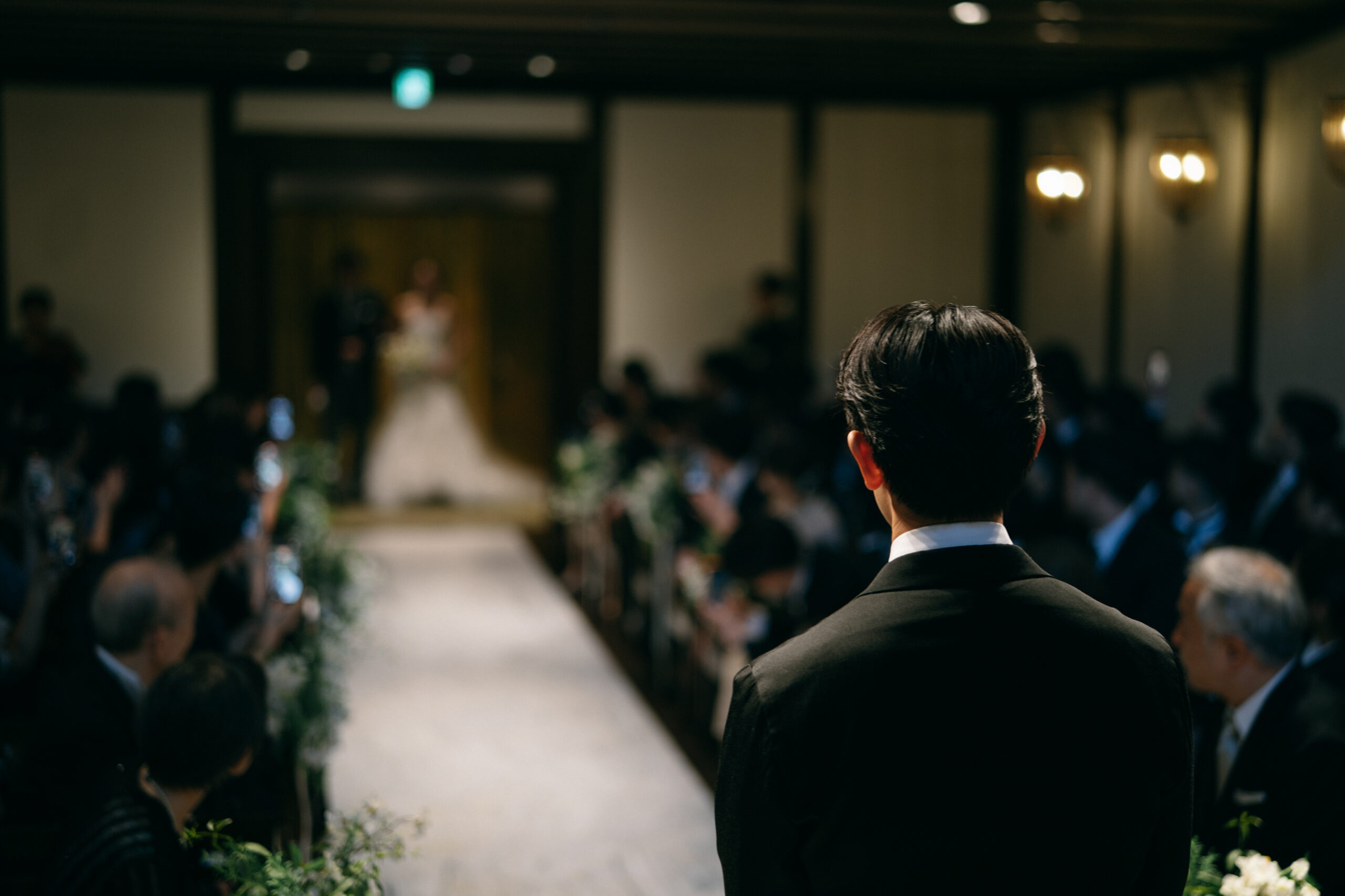 ご新婦様とお父様がヴァージンロードを歩みだそうとしております。